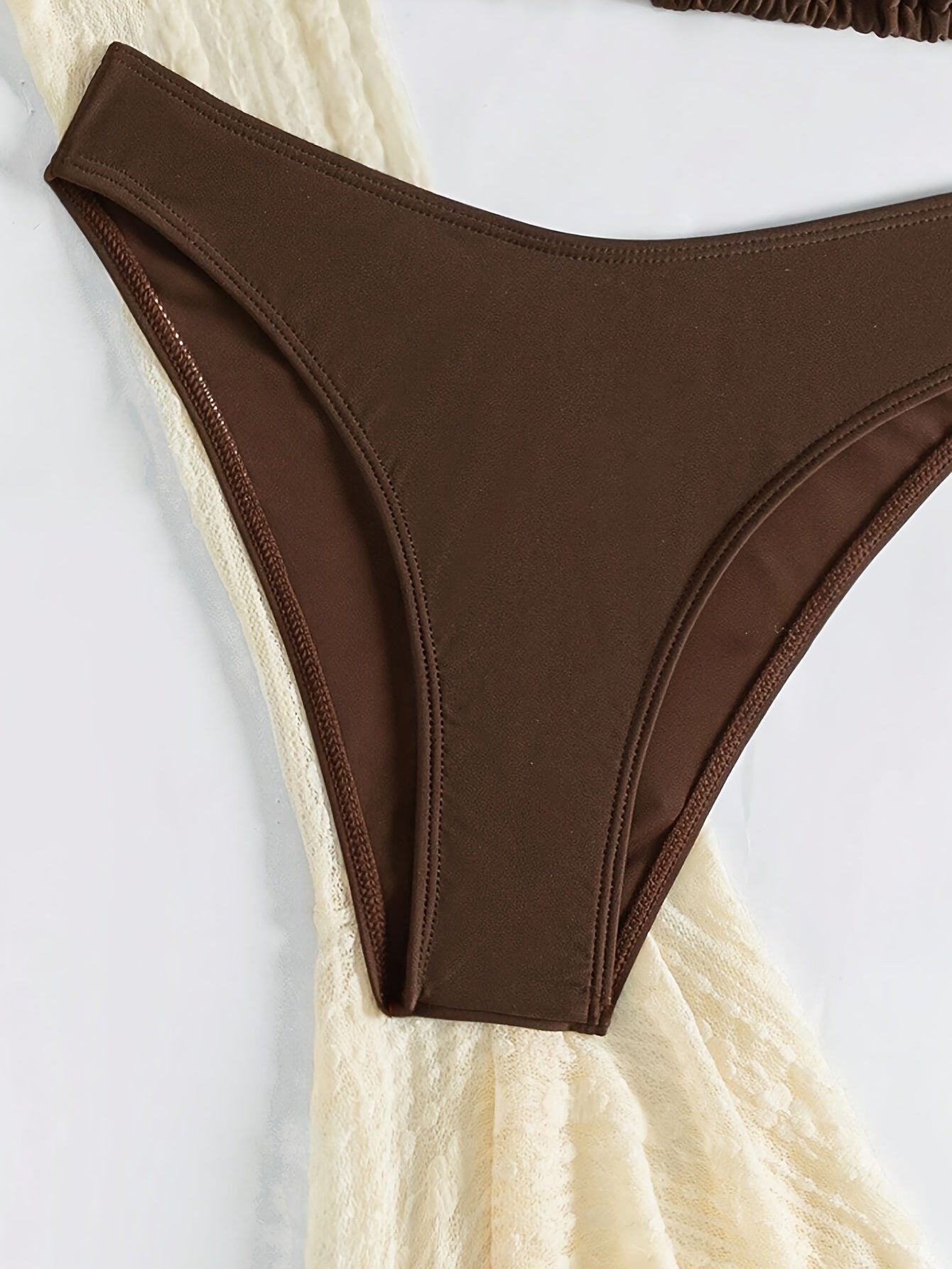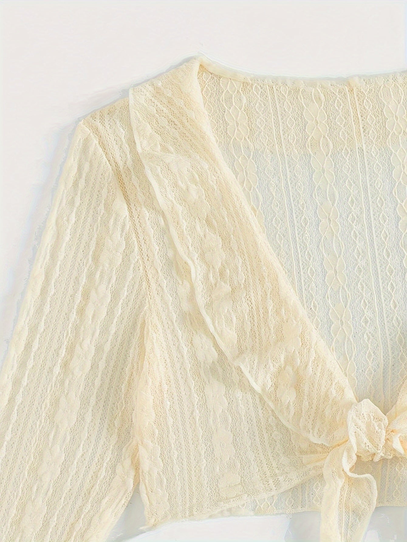 4-Piece Swimwear Set for Women - Stylish Lace Long Sleeve Crop Top with Chic Tie-Front, Flattering Solid Color Triangle Bikini, Flowy Wrap Mini Skirt, Perfect Beachwear for Summer Vacation, Pool Party, or Beach Trip