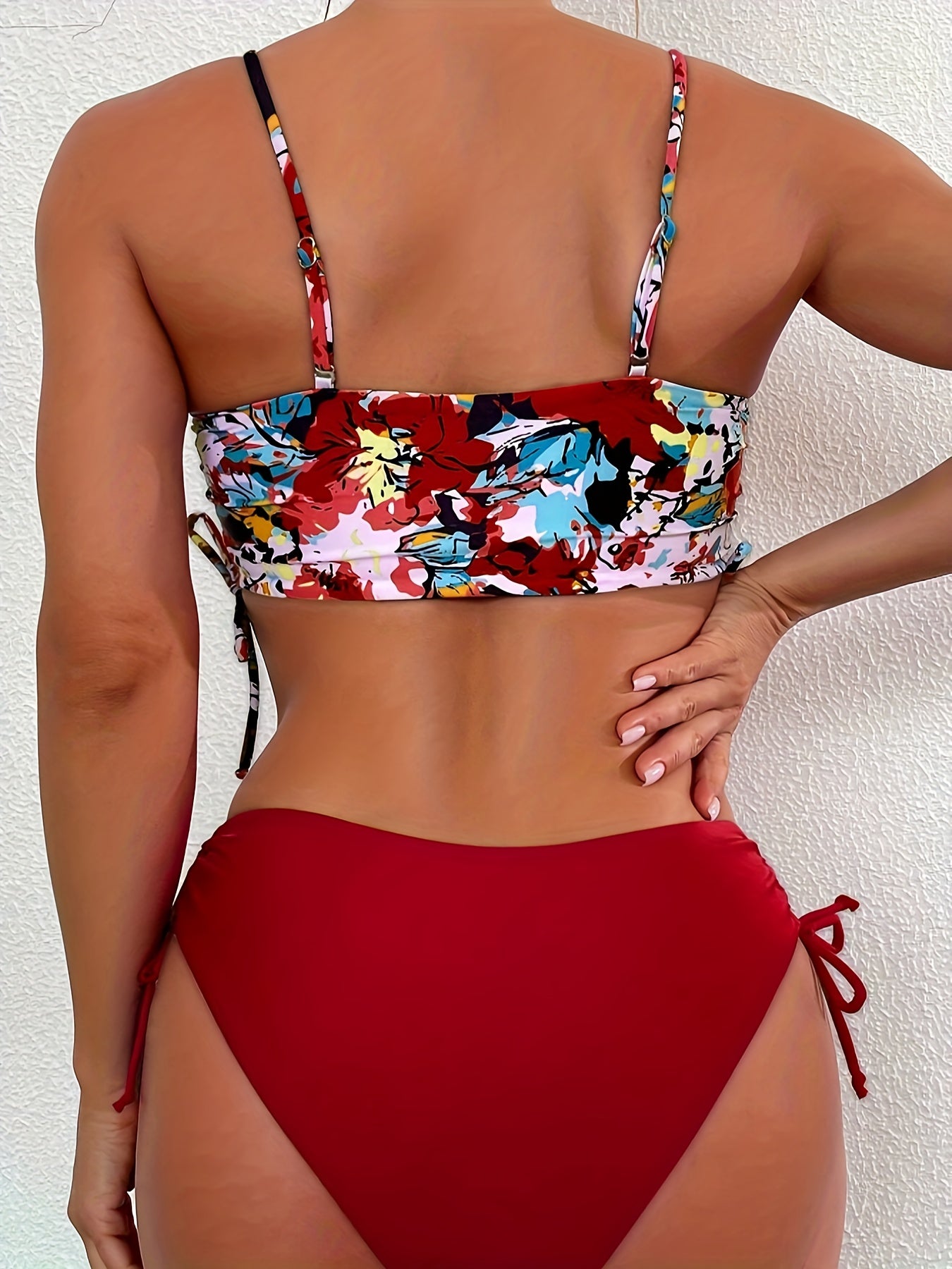Bold Floral Print Bikini Set - 2 Piece, Adjustable Tie Sides, High-Waist, Sexy Swimwear for Women - Flattering Beachwear Ensemble