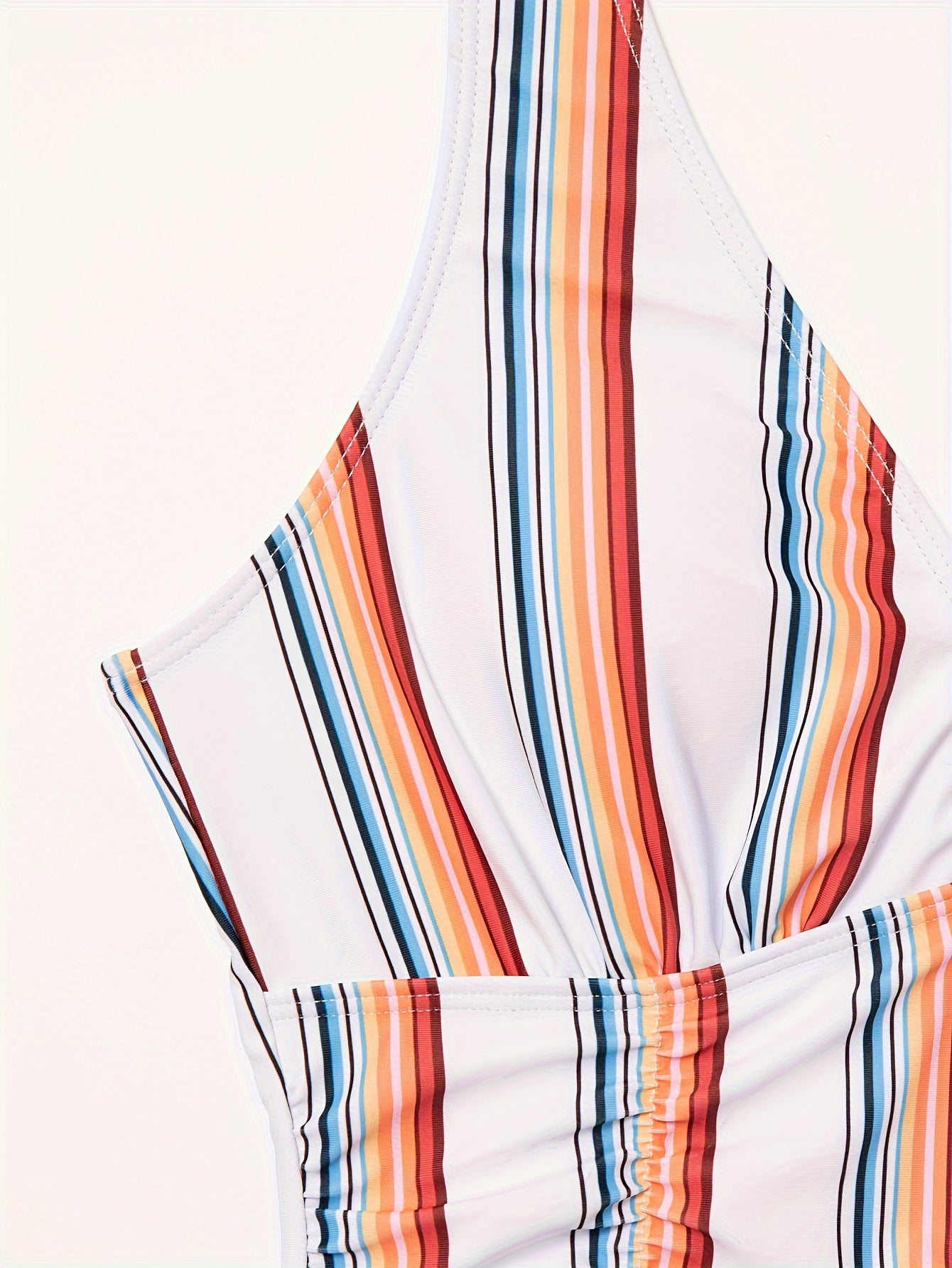 Charming Bohemian One-Piece Swimsuit - Striped Shoulder Design, Trendy Beachwear for Women - Flattering Chic Poolside Ensemble