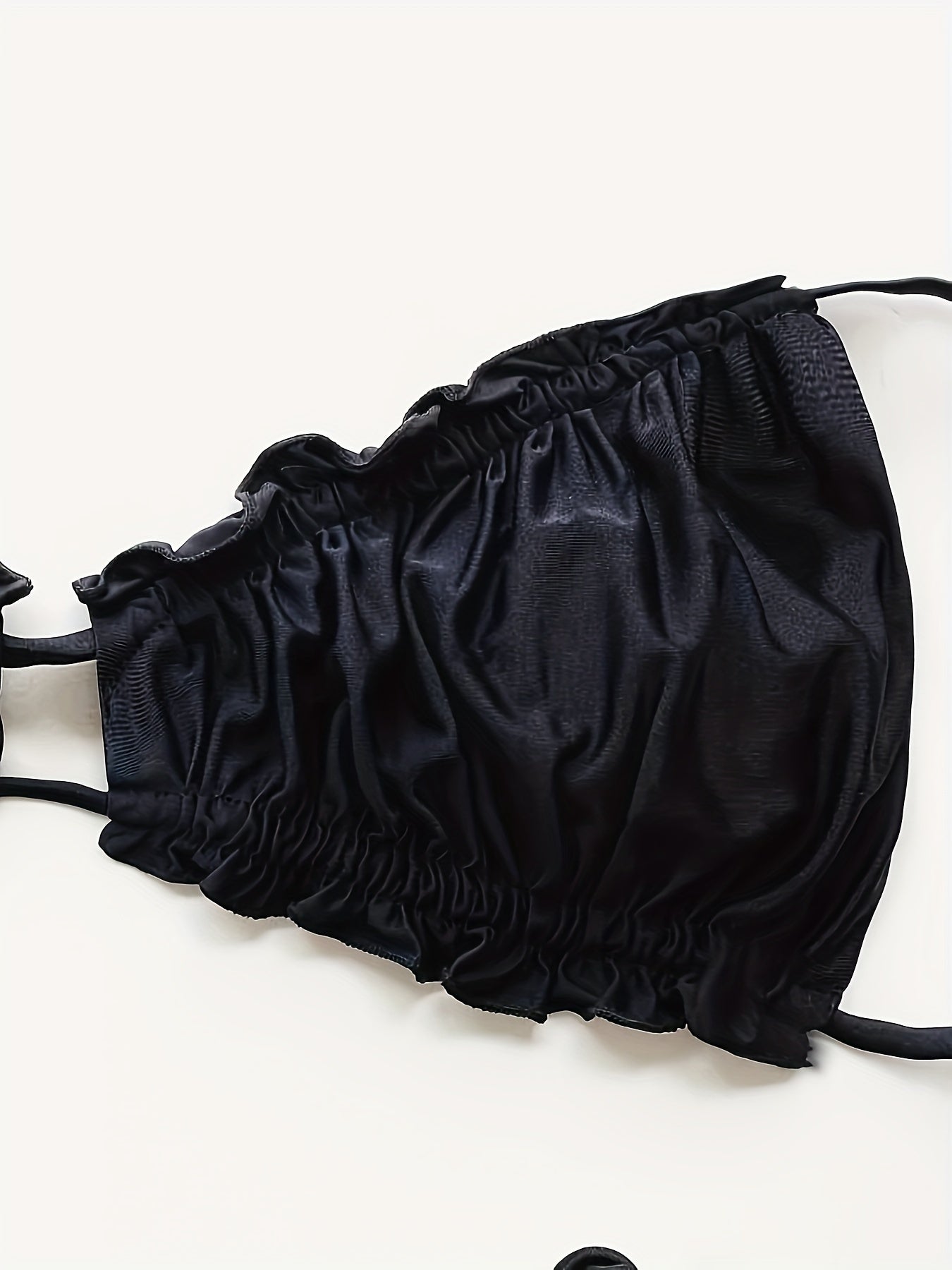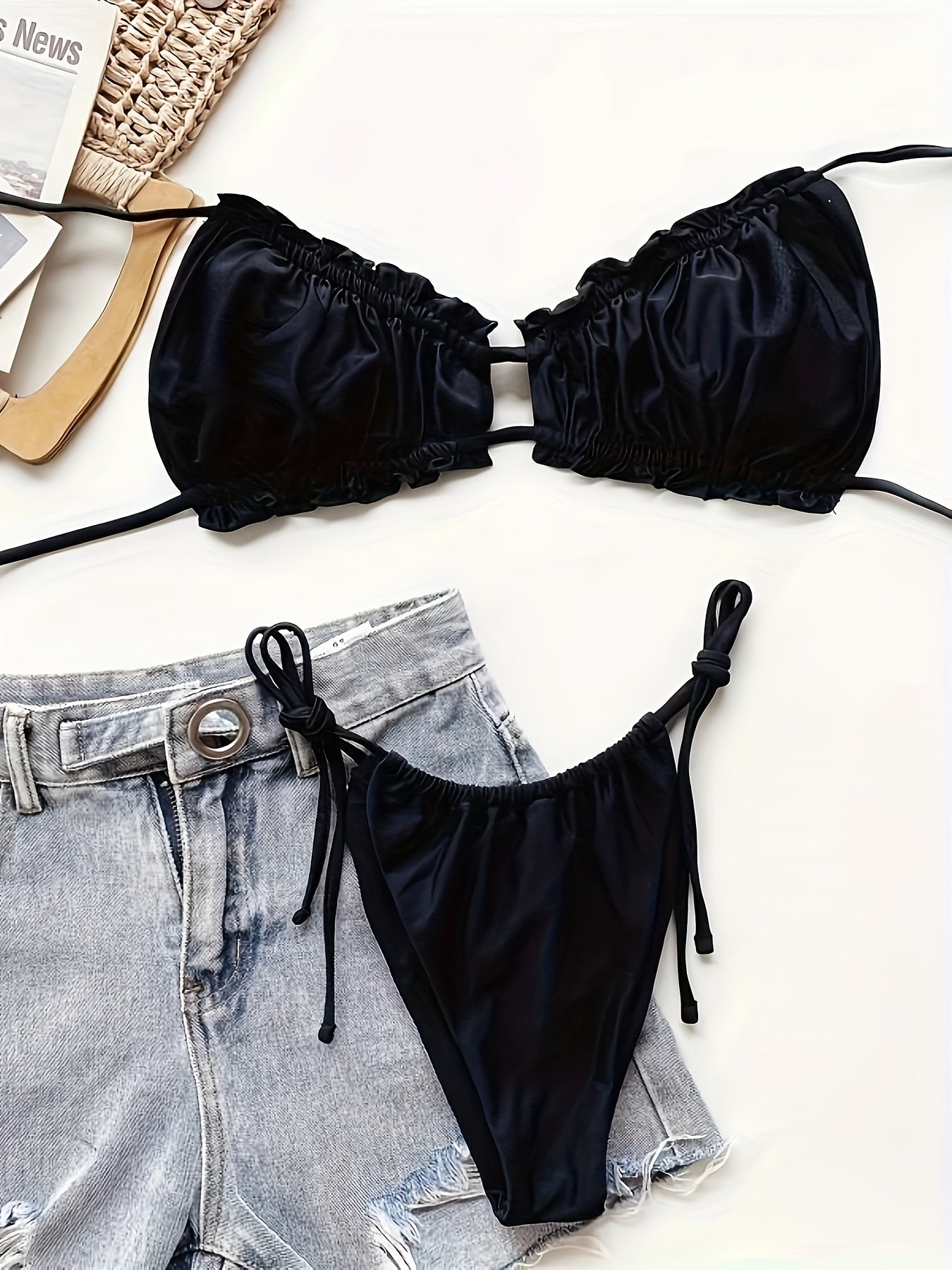 Chic Frilled Halter Bikini Set - Solid Color, Trendy Frill Trim, 2-Piece Swimsuit with Adjustable Halter Neck & Tie Side High Cut - Perfect for Womens Beachwear