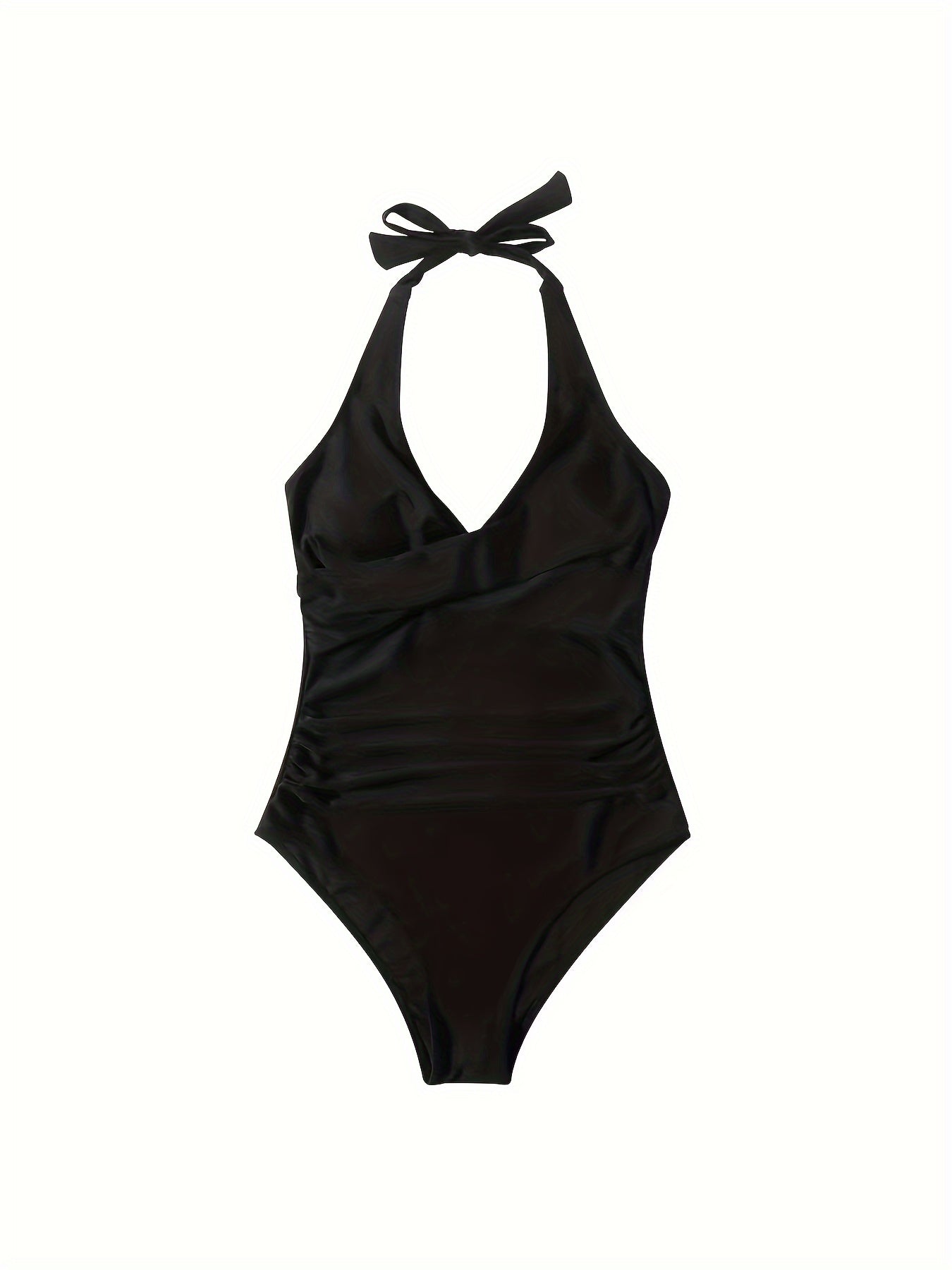 Chic High Cut One-Piece Swimsuit – Flattering Halter V-Neck Design, Tummy Control, Perfect for Beachwear & Poolside Fashion