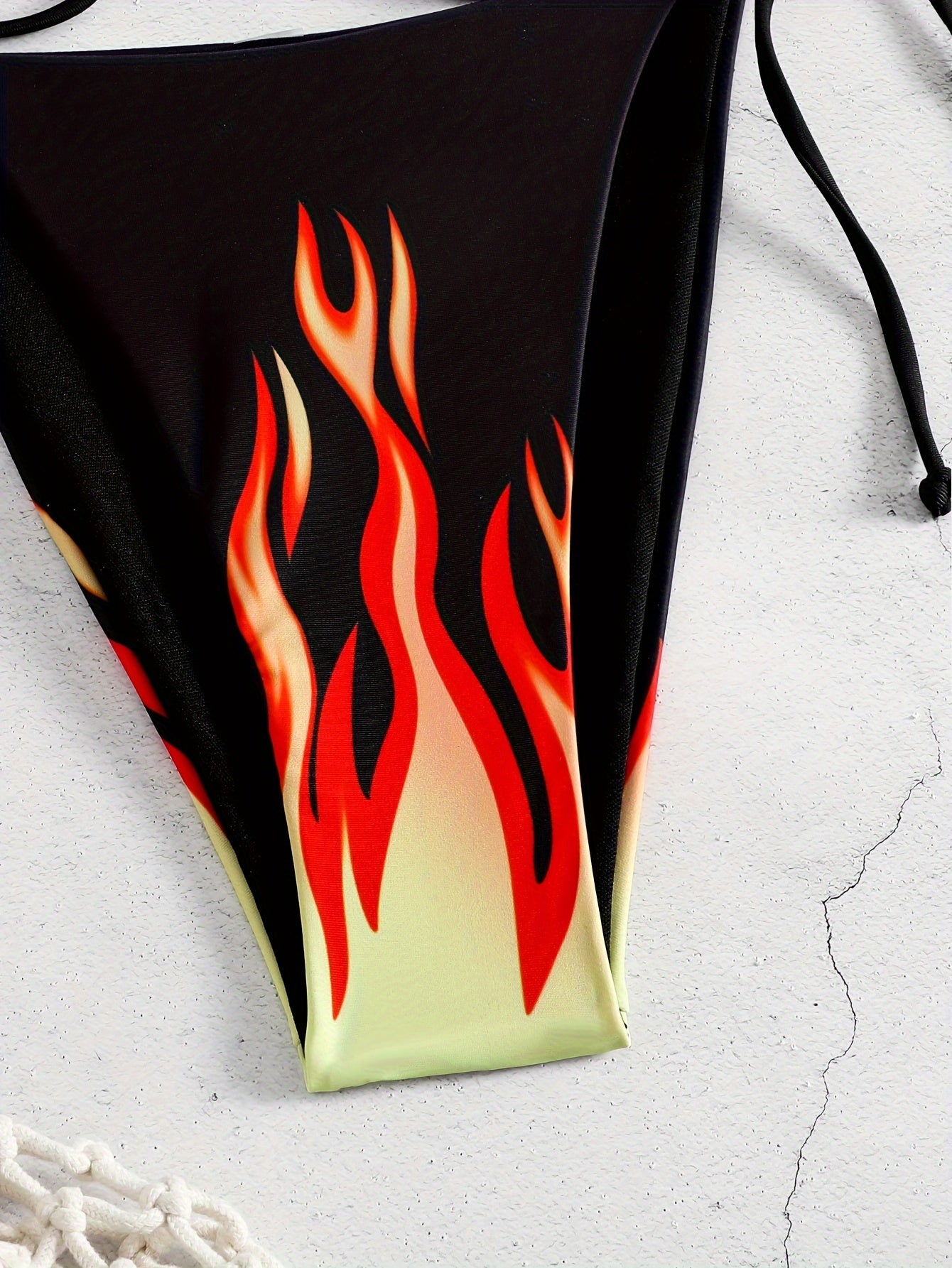 Flame Print Two-Piece Bikini Swimsuit, Beachwear, Women's Swimwear, Fire Design Bathing Suit, Adjustable Tie, Summer Fashion