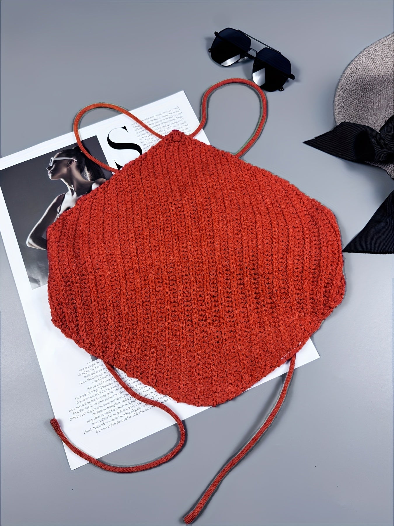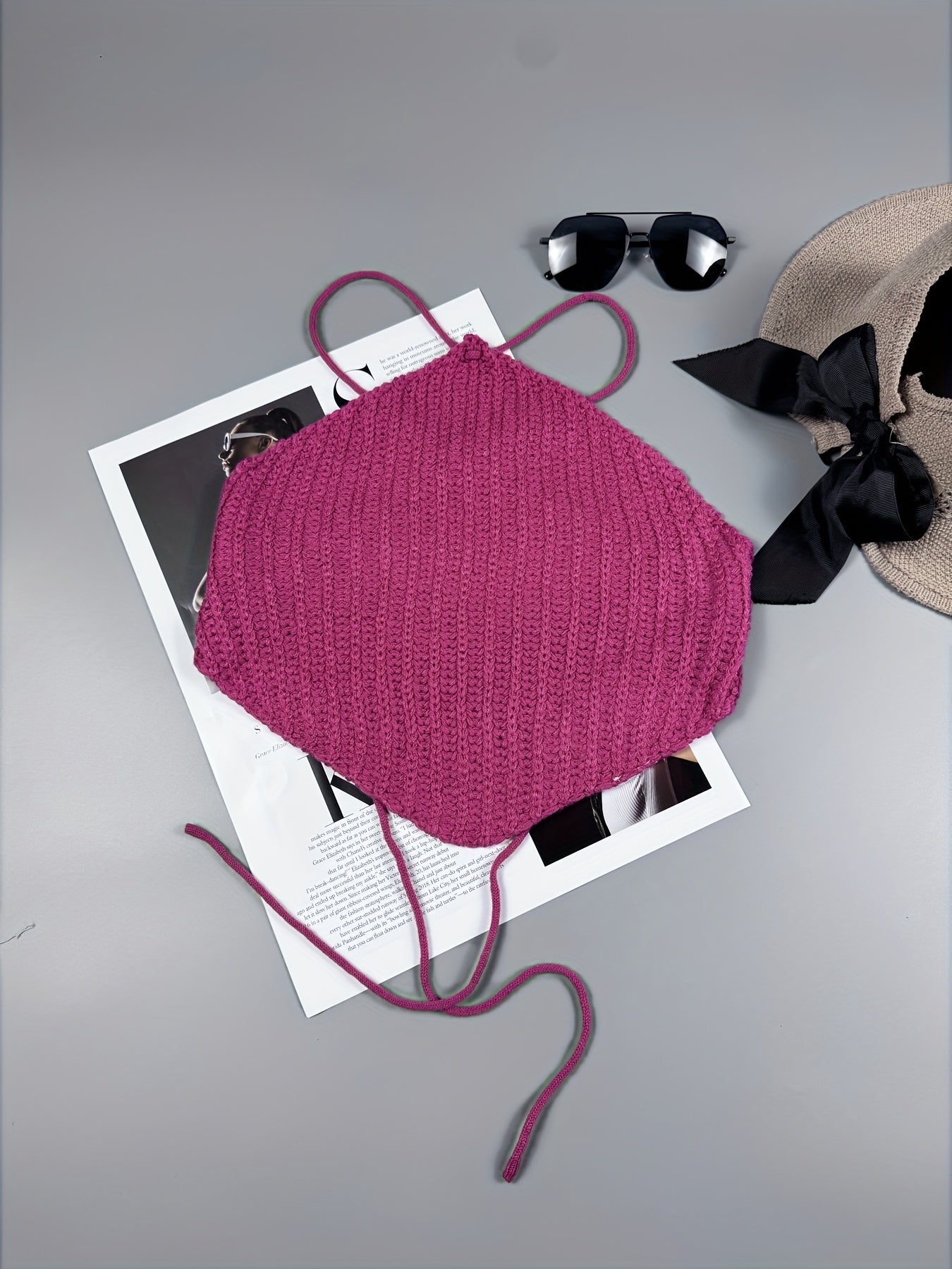 Women's Elegant Halter Neck Top - No Back Crossed Straps Solid Color Short Sleeve Beachwear, All-Season Versatile Casual & Formal Shirt, Beach Clothes, Soft Texture