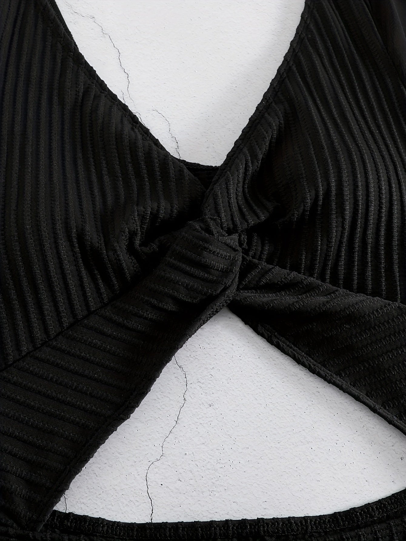 Women's Fashion One-piece Swimsuit, Casual Style, Long Sleeve, Cut-Out Detail, Ribbed Texture, Beachwear, Poolside Apparel