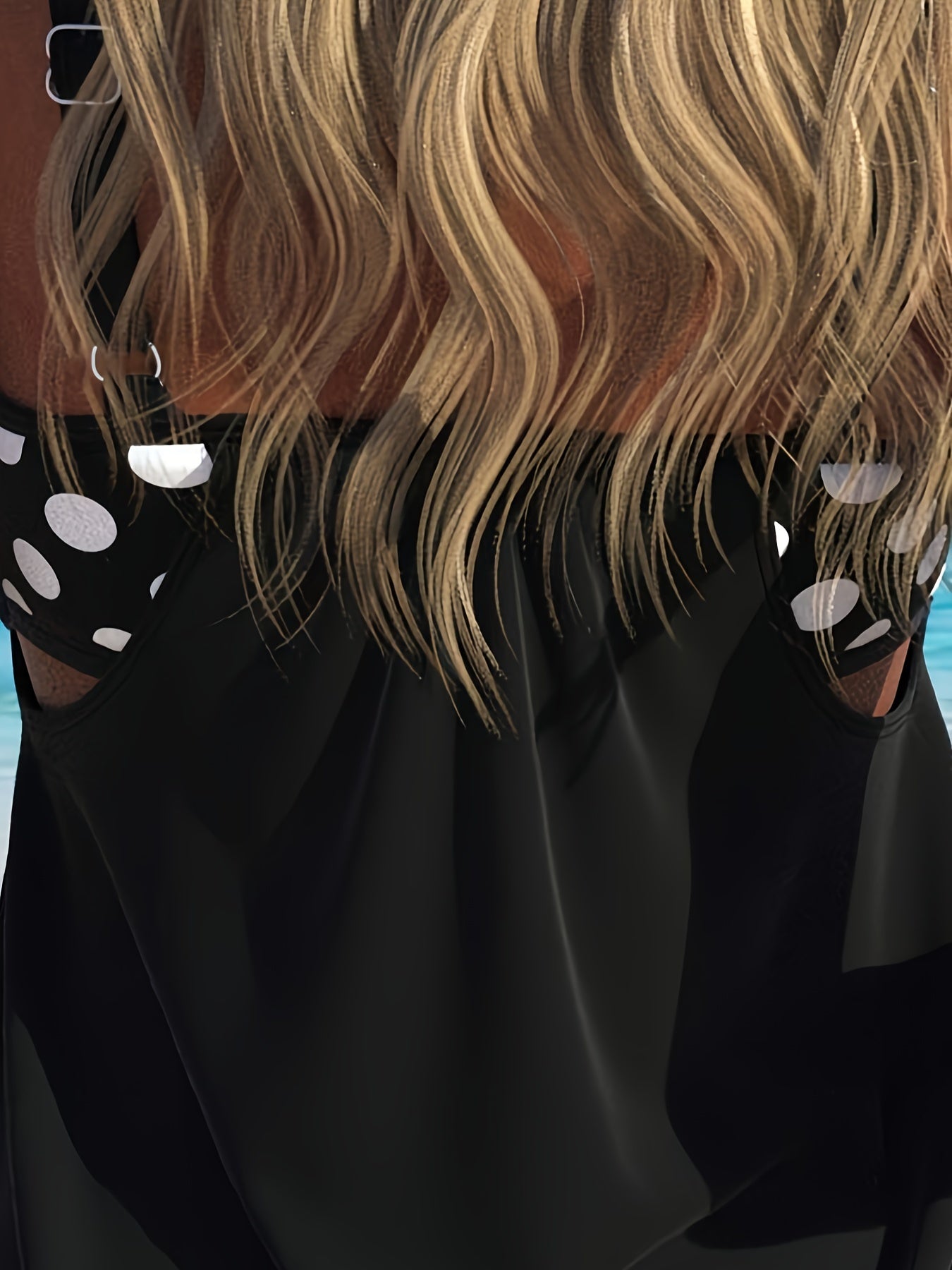 Women's Tankini Swimsuit Set With Polka Dot Shorts, Two-Piece Swimwear, Black Sleeveless Top, Beachwear